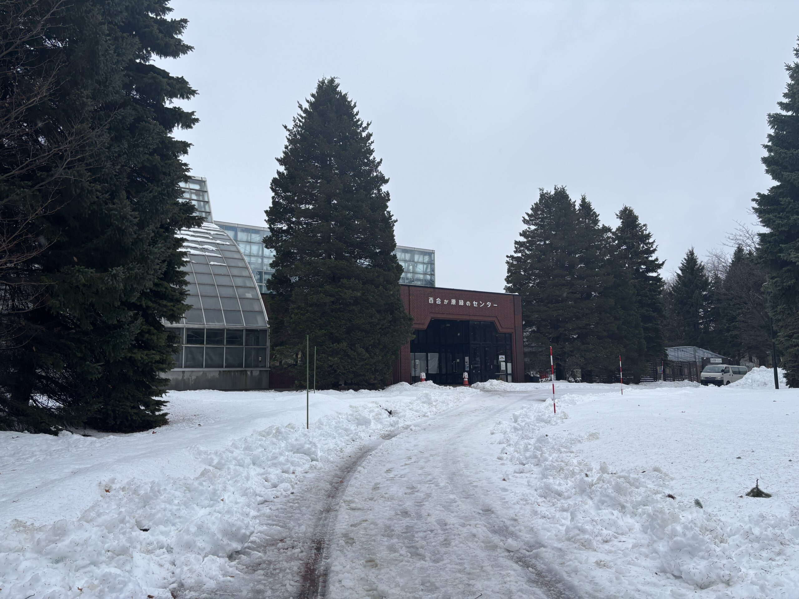本日は少し気温が高めのせいか降り積もった雪が融けはじめていた百合が原 緑のセンターでは、明日からワークショップを開催します。