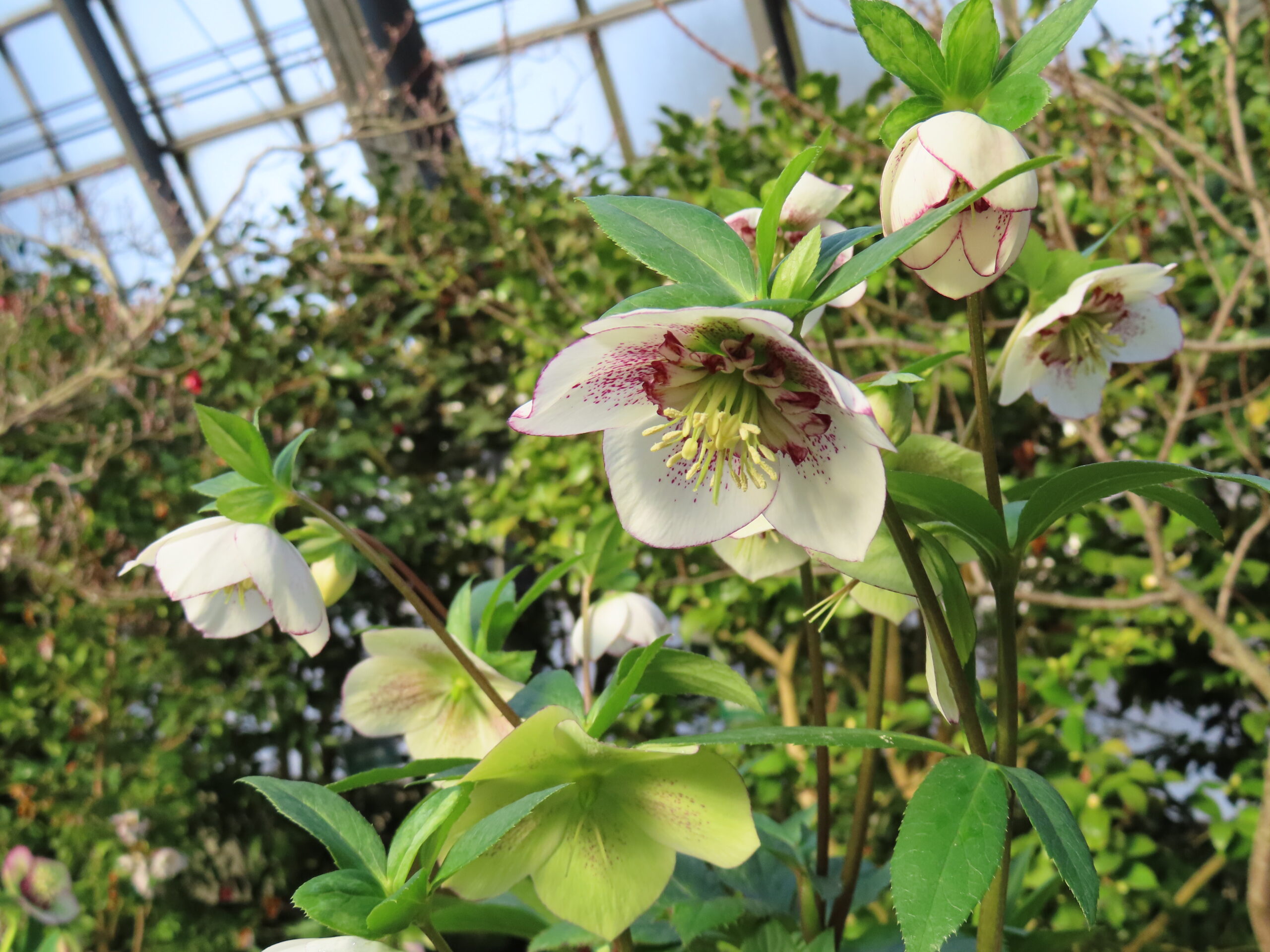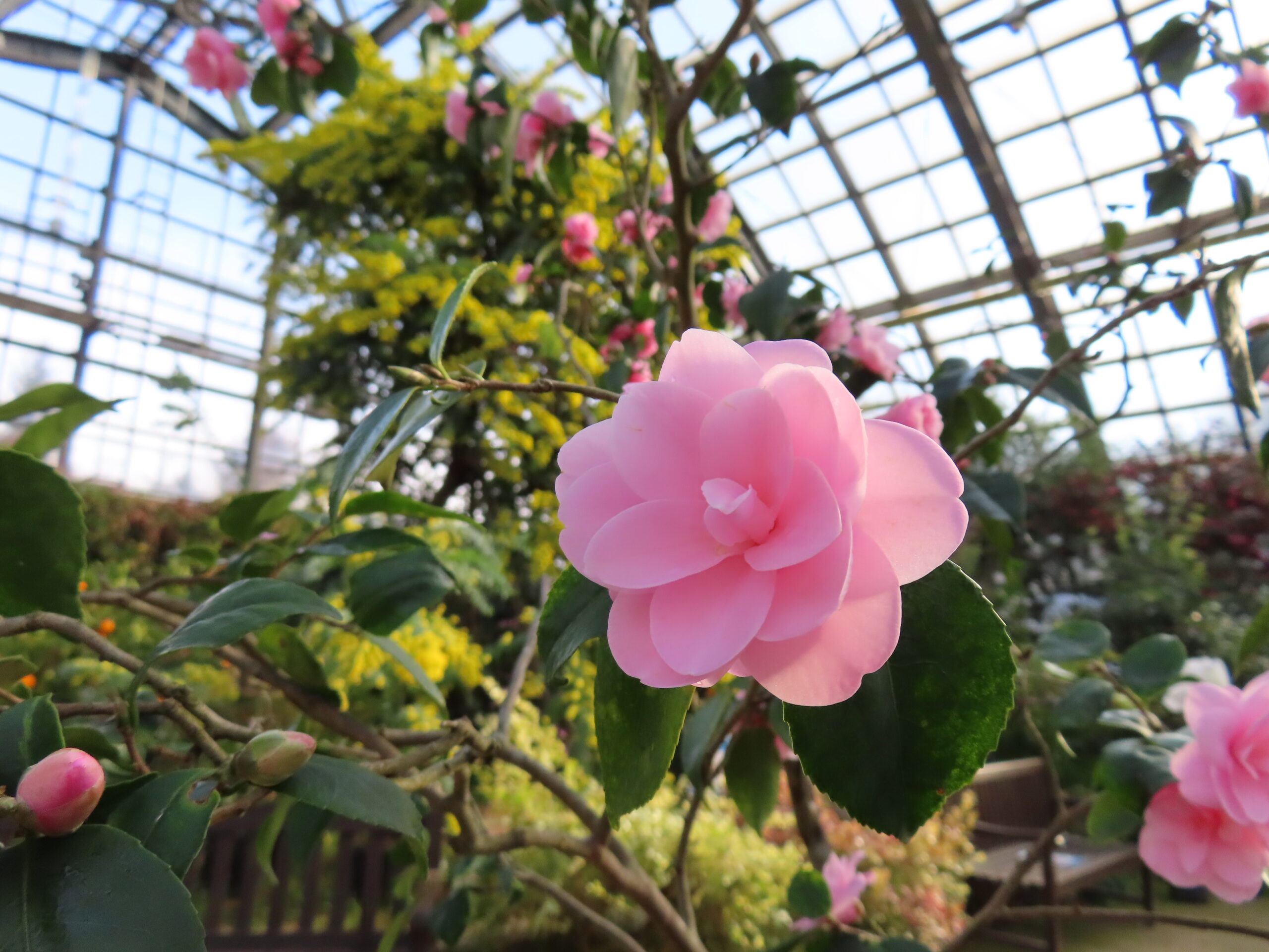 大温室では250種類もの色とりどりのツバキの展示会もそれぞれ開催されています。