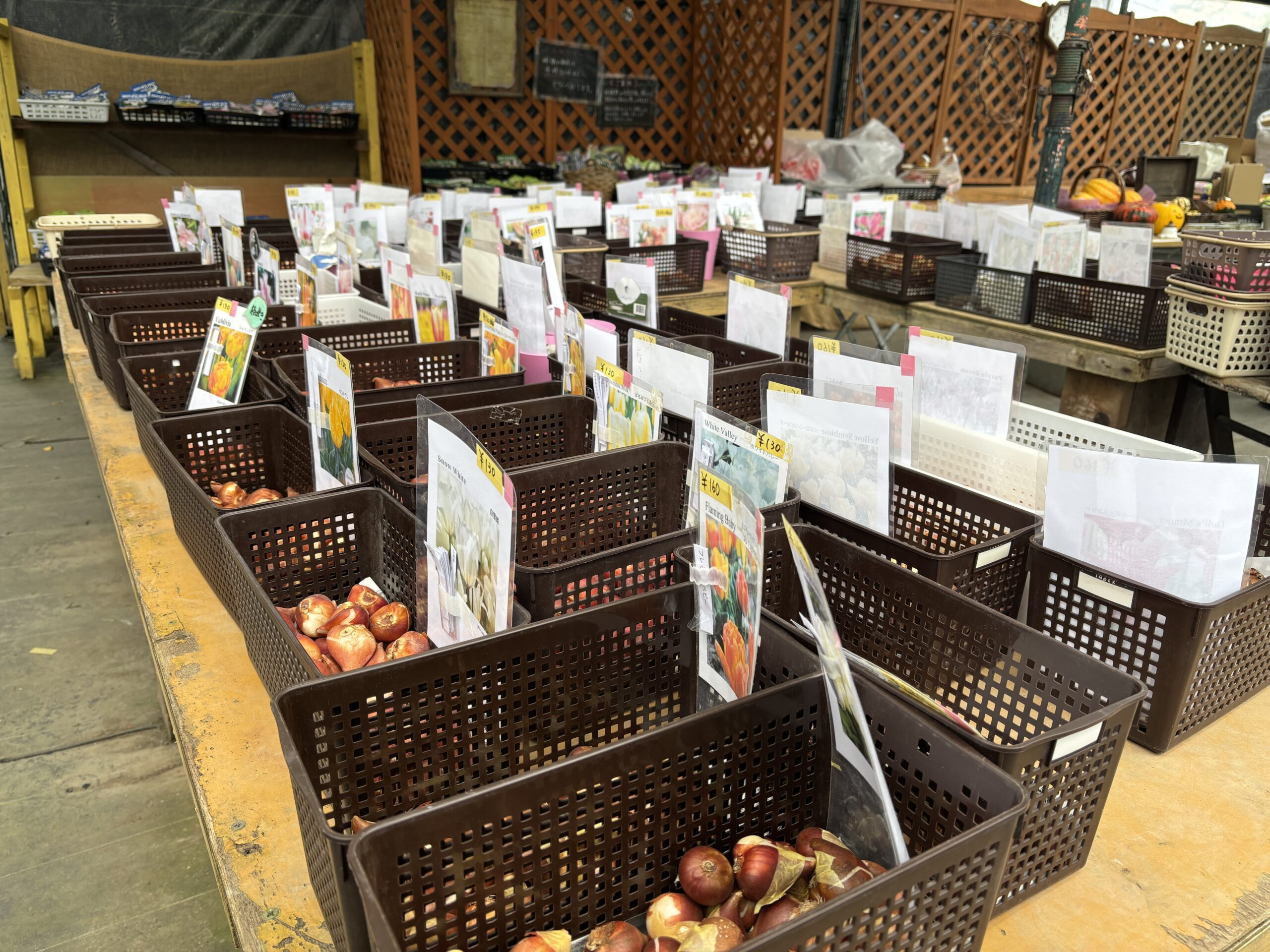 秋植えの球根(ユリやチューリップ、ムスカリ、スイセン、ヒヤシンスなど)はもちろん、ビオラやパンジーなどの花苗も続々入荷しているガーデンショップ。