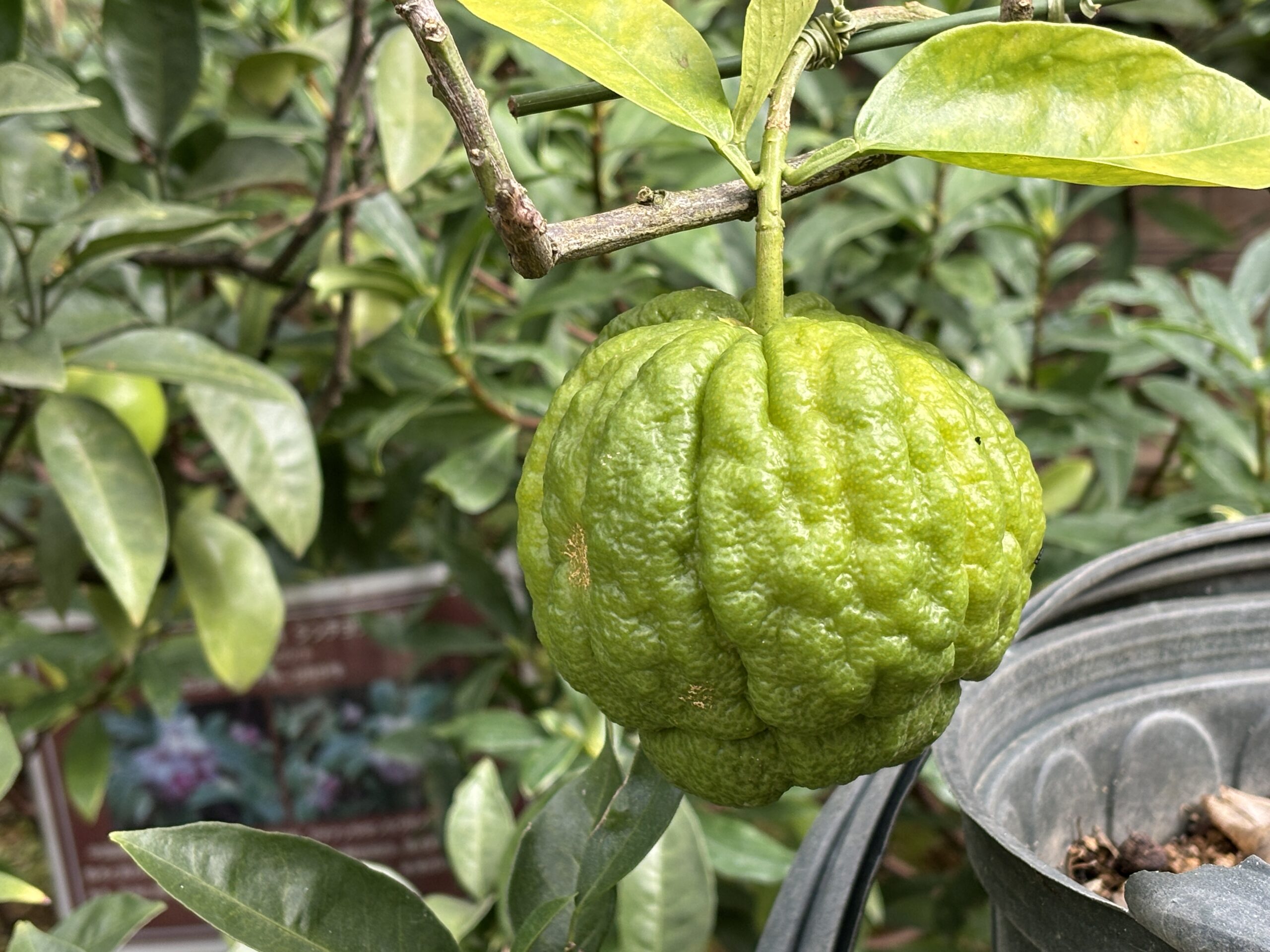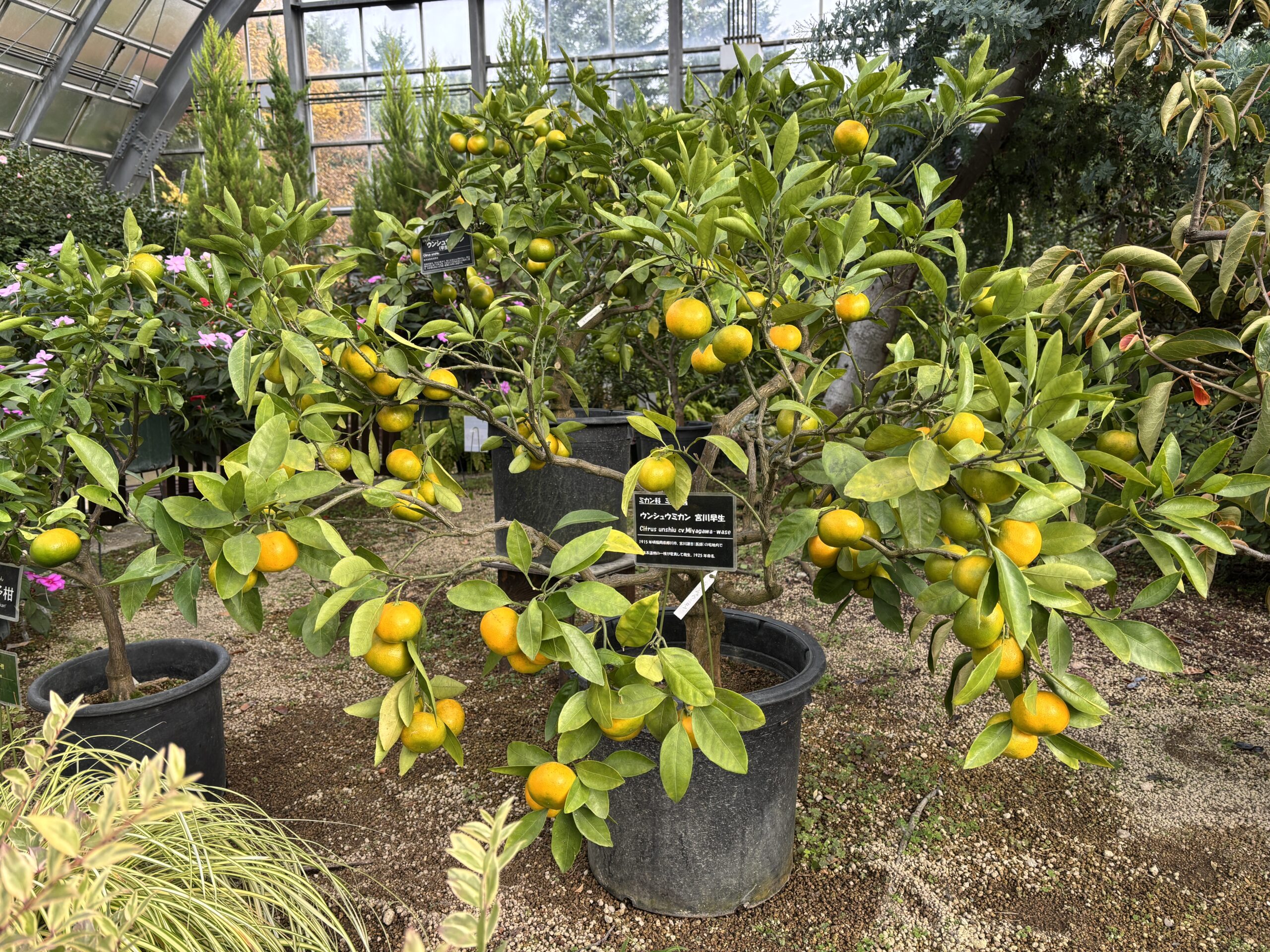 同じ大温室では、キンカンやウンシュウミカンのほか、獅子ユズや晩白柚(ばんぺいゆ)など、珍しい柑橘類の展示も始まっています。