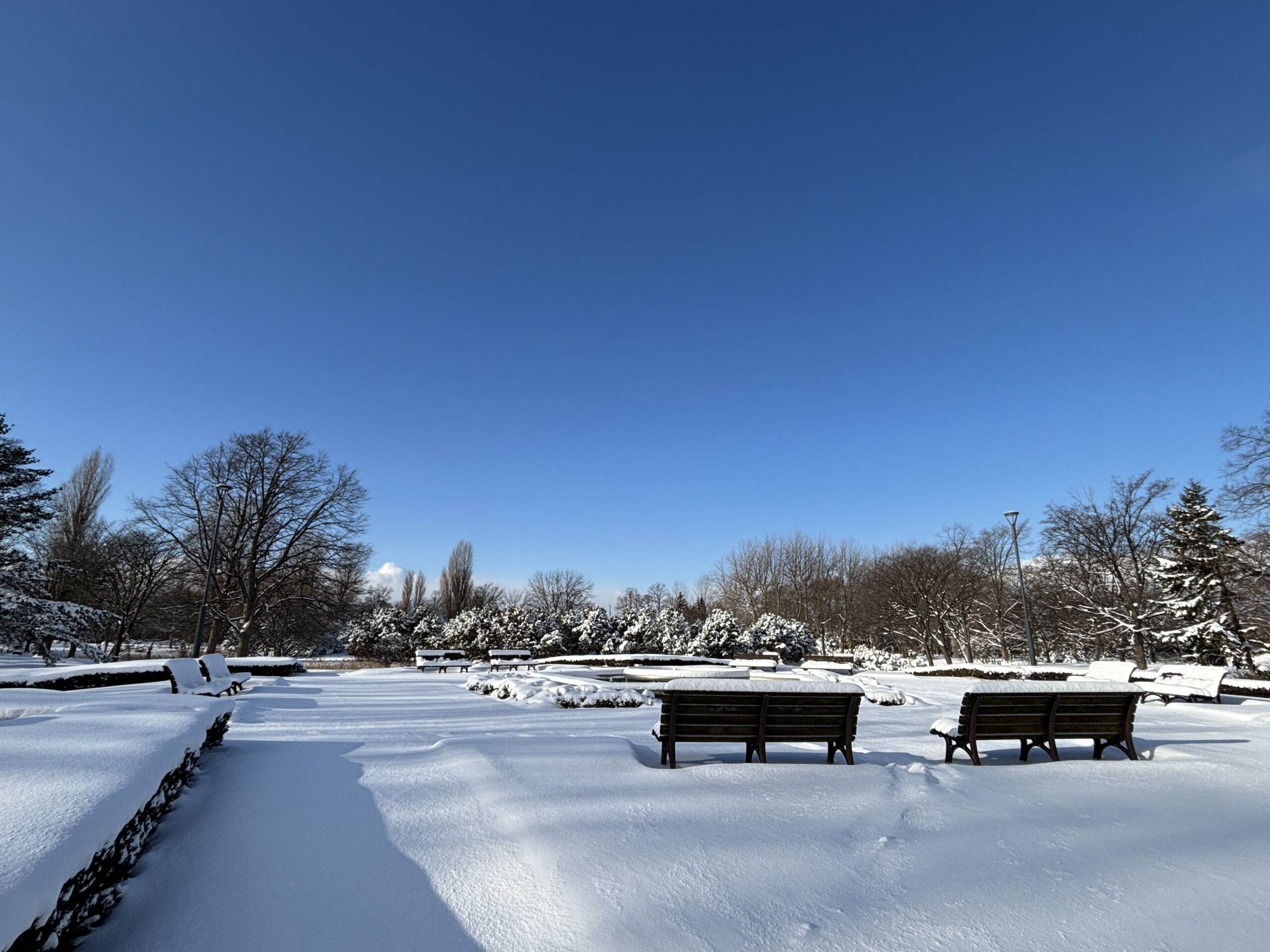 朝一で園路の除雪は終わっていますが、場所によっては滑りやすいところもあります。散策やウォーキングの際は、足元に気をつけてお楽しみください。