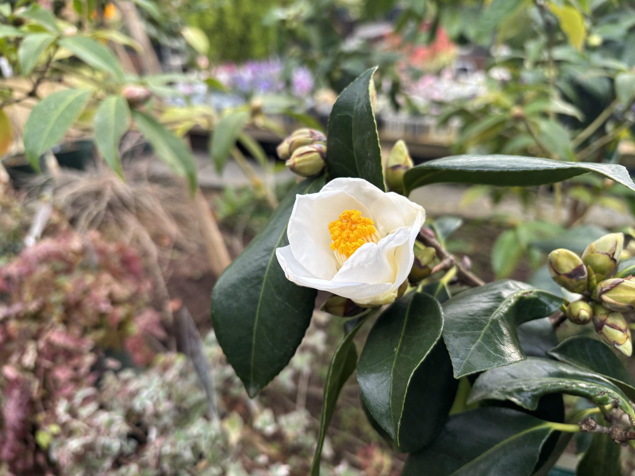 白や薄桃色のツバキなど、開花しているものは40種類以上