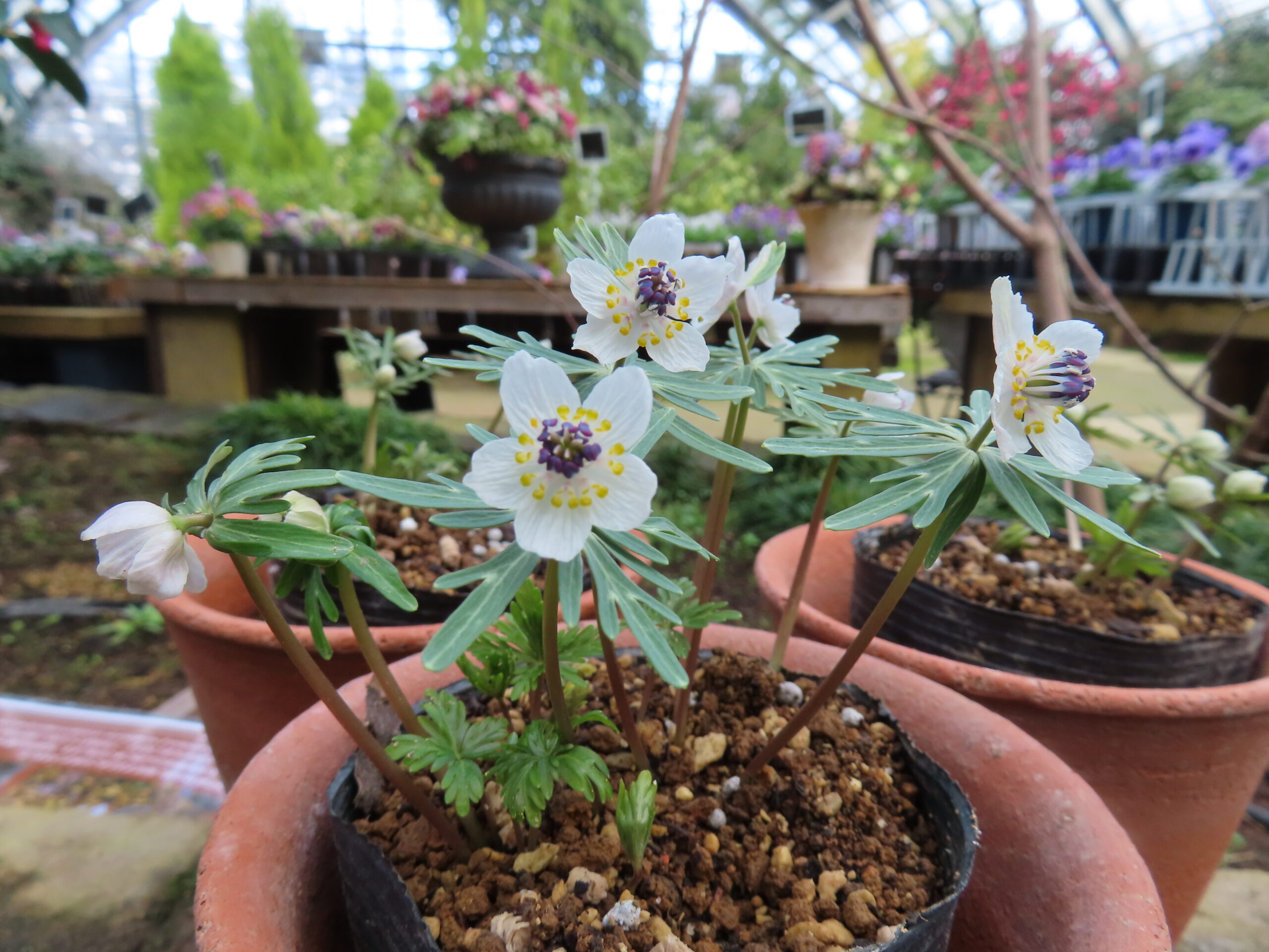 大温室では、旧暦の節分の頃に開花することでその名がついたと言われている、セツブンソウ(節分草)が咲き始めました。