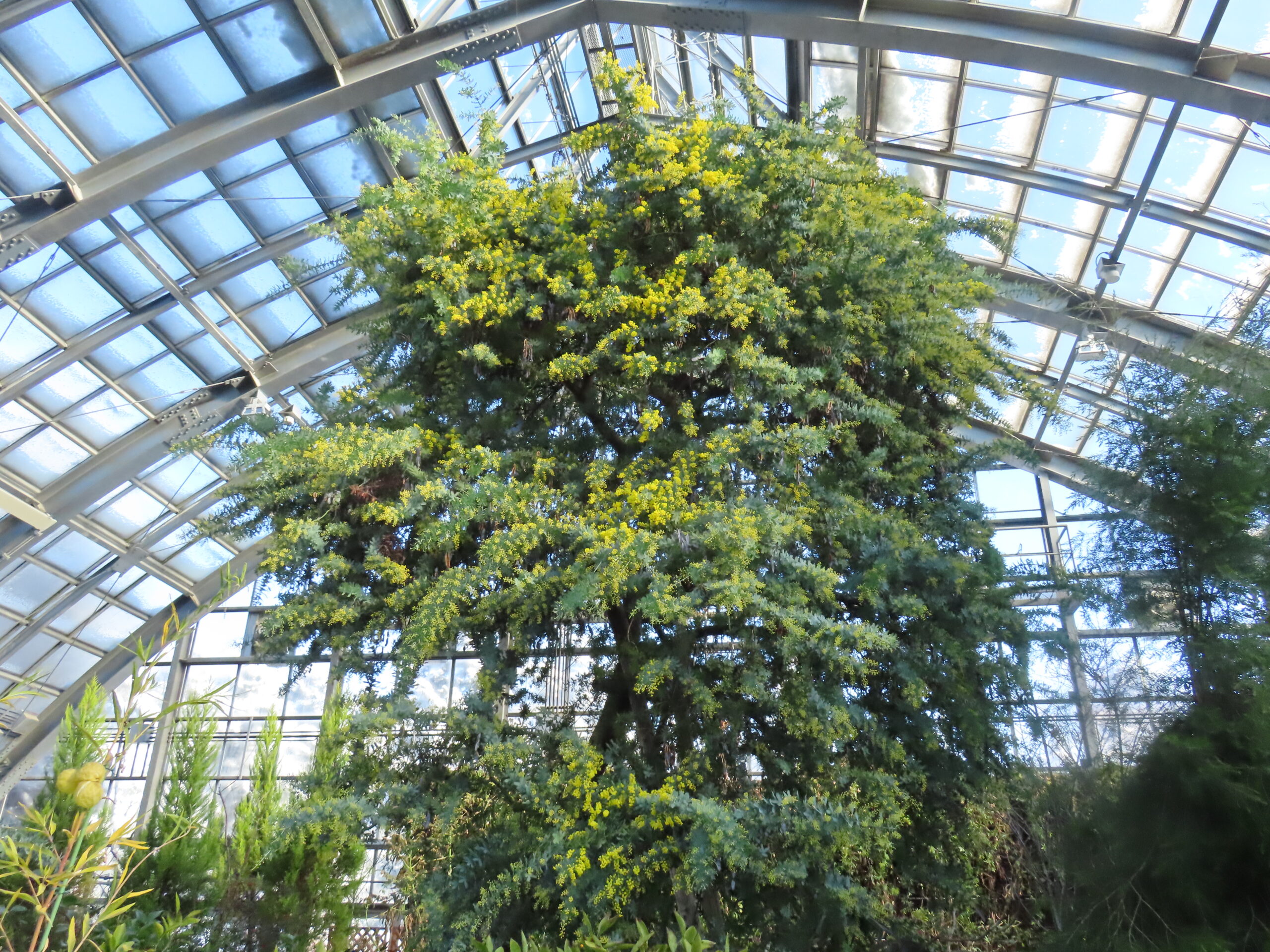 ミモザが温室に春を呼び込んでいるようです。