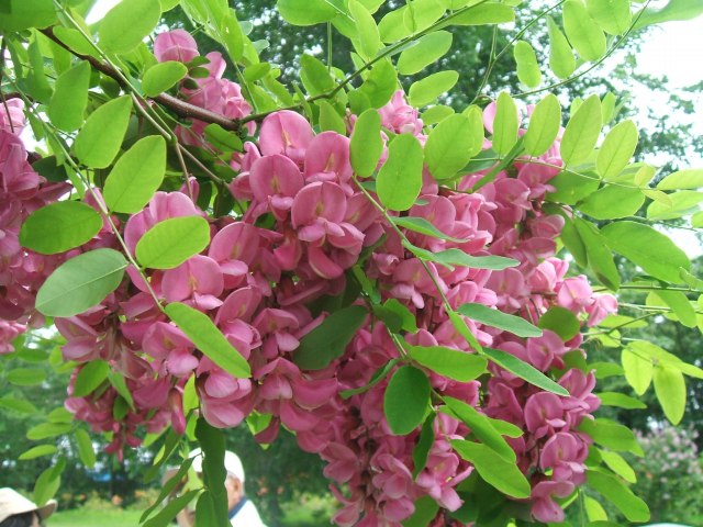 遠くから見ると、木が全体的にピンク色に見えるほど、花がたくさんついています。