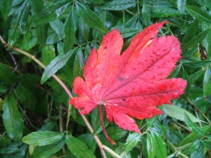 さて今年の紅葉はどうでしょうか。百合が原公園では、色が変わり始めたカエデの枝がちらほら見られます。