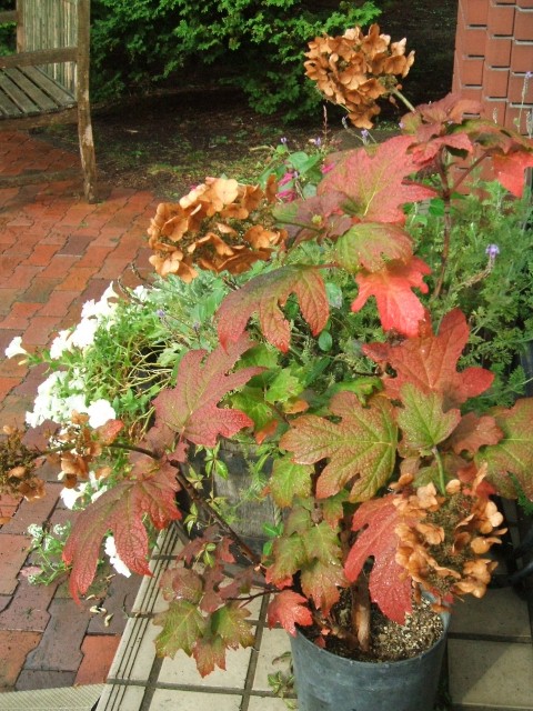 カシワバアジサイは落ち着いた色合いの紅葉。