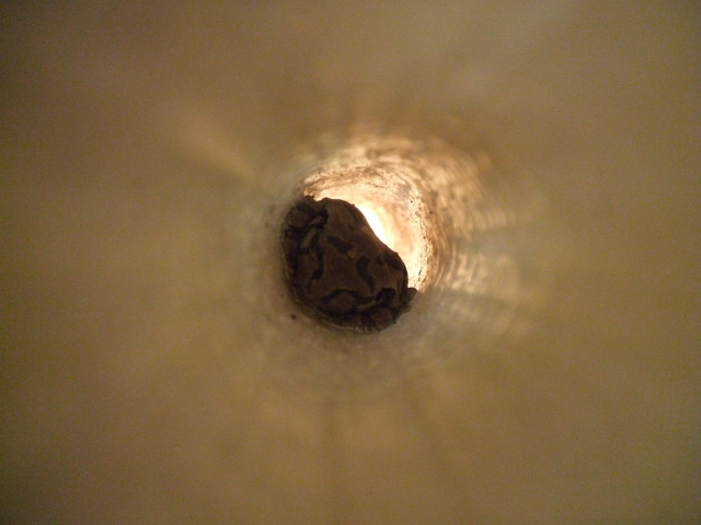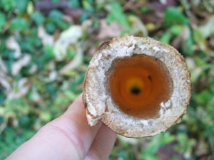 ユリ園にあるオオウバユリの花茎の断面を上から見たところ。中は空洞になっています。
