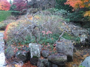 日本庭園の紅葉、まだまだ鮮やか。※世界の庭園は冬期閉鎖中につき一般の方は中に入ることはできません。