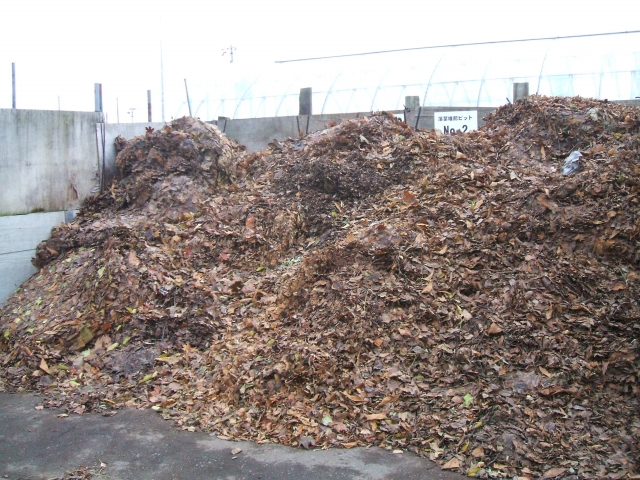 落ち葉の山です。ここには、中島公園や大通公園などの市内の公園からも大量の落ち葉が運び込まれます。