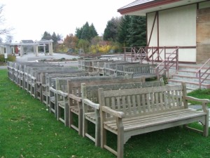 冬季は園内のベンチを撤収して、リリトレ駅舎に運び込みます。