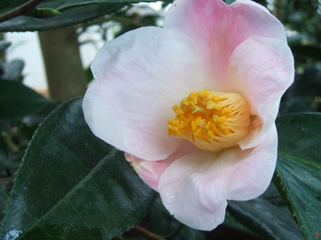 大温室では、早咲きのツバキがちらほらと咲いています。