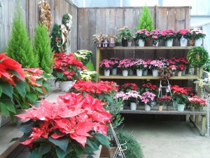 小温室~売店には、ポインセチアやシクラメンなどの鉢植えを展示・販売しています。