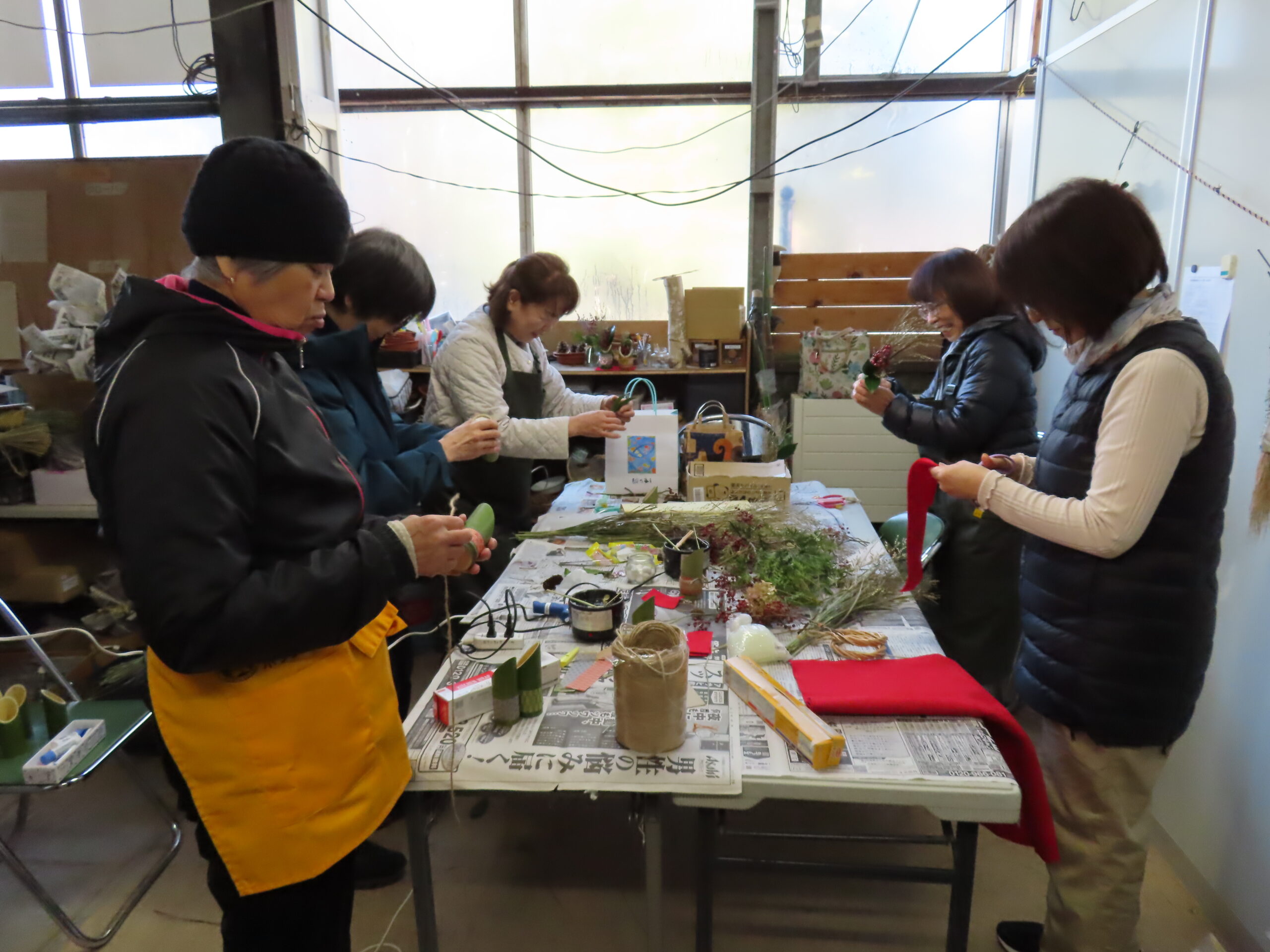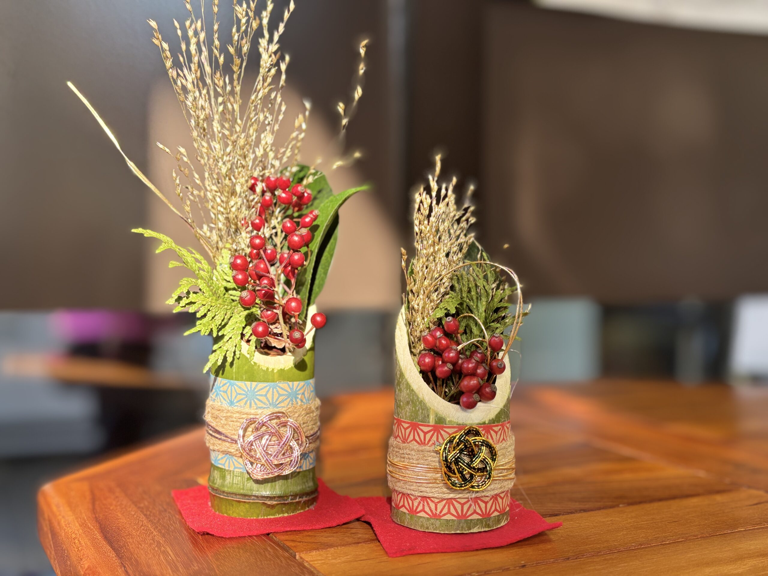 また、本日は百合が原公園ボランティアのみなさんと青竹を使った正月アレンジも制作。